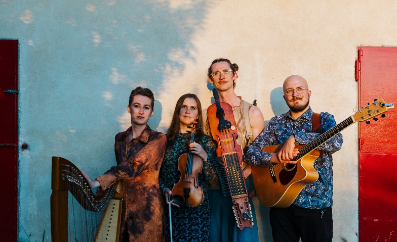 First time in Schwitzerland! Woodlands Bäckafall fuses Swedish midsummer with the spirit of an Irish pub. Four voices, five languages, and a vibrant blend of nyckelharpa, Celtic harp, fiddle and guitar. Rooted in tradition – but never stuck in it. Starting out as a quartet for a one-off concert, Woodlands Bäckafall were brought together to perform at Göteborg Folk Festival in 2020. We had never played together previously and had only one rehearsal prior to the show. The nerves were real but the magic that rose between us sparked a will to continue playing. And so we did! Our debutalbum Traditional Colours is the fruit of the last five years of creating and writing music together: music based on our different backgrounds, languages and traditions. A piece of art painted with our personal traditional colours.