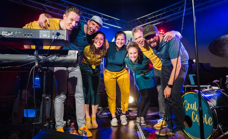 Die siebenköpfige Band vereint der unverkennbare Sound von Keys & Orgel, die groovige Rhythmus-Section und das kraftvolle Bläsertrio. Mittendrin und immer in Bewegung steht die markante Soul-Stimme der Frontsängerin. Gemeinsam schaffen sie mitreißende, emotionale Live-Momente voller Herzblut, in denen sie dem Publikum so richtig einheizen. Neben der modernen Neuinterpretation bekannter Hits kreiert Soul Cycle inzwischen ihre eigenen, von R’n’B, Funk und HipHop inspirierten Soul-Songs. Nachdem 2022 die ersten „reCYCLEten Songs“ erschienen, folgte 2025 ihre erste EP mit Tracks aus eigener Feder. Soul Cycle brennt für tanzbare Musik und lässt den Funken überspringen – good vibes garantiert!