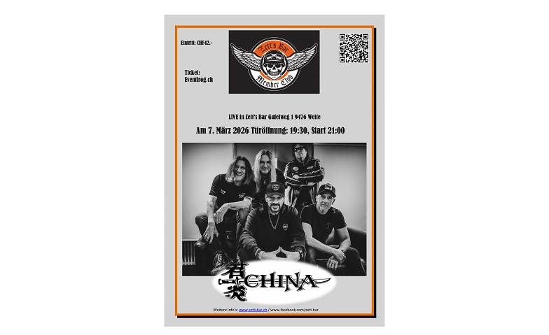 China Konzert am 7. März 2026 in Zett's Bar