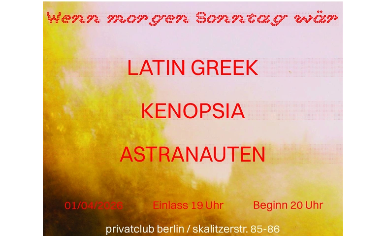 Kenopsia ist eine sechsköpfige Alternative-Band aus Berlin, die Anfang 2024 von den Schwestern Charlotte und Tabea zusammen mit ihrer Cousine Maria gegründet wurde. Im Laufe des Jahres kamen Schlagzeuger Luka und Gitarrist Henry hinzu, und seit Ende 2025 ist die Band mit Bassist Benjamin komplett.