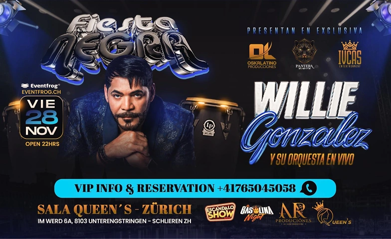 Erlebe einen unvergesslichen Abend mit Willie González, wenn er Songs wie «No Podrás Escapar de Mí», «Quiero Morir en Tu Piel» und viele mehr interpretiert.