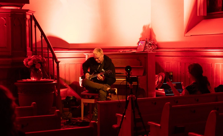 Tauche ein in einen Raum, in dem Musik und farbiges Licht verschmelzen. Während Hanspeter Krüsi spielt, umhüllt