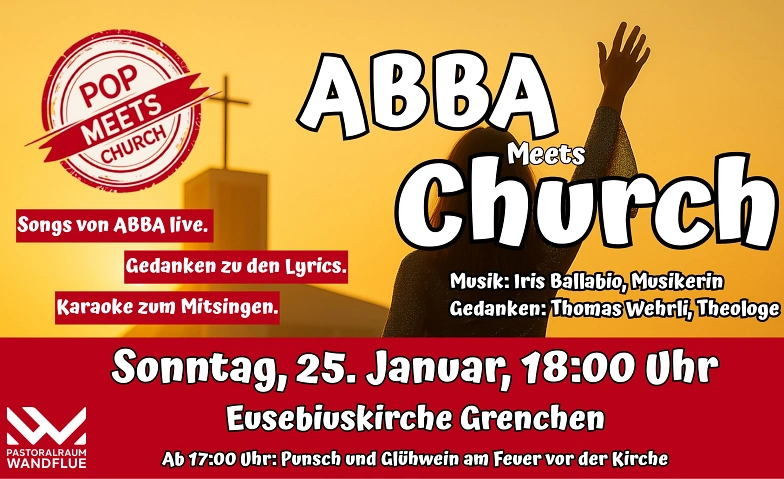 ABBA Meets Church richtet sich an Menschen aller Generationen – an ABBA-Fans, Musikliebhaberinnen und -liebhaber sowie an alle, die offen sind für neue, niederschwellige Formen spiritueller Auseinandersetzung. Fünf Songs werden von der Sängerin Iris Ballabio live interpretiert, fünf weitere laden in einer Karaoke-Version zum Mitsingen ein. Ergänzt wird der Abend durch ein ABBA-Bibel-Quiz mit Gewinnmöglichkeit. Bereits ab 17:00 Uhr gibt es vor der Kirche Punsch und Glühwein am Feuer. Der Eintritt ist frei, es wird eine Kollekte zur Deckung der Unkosten erhoben.