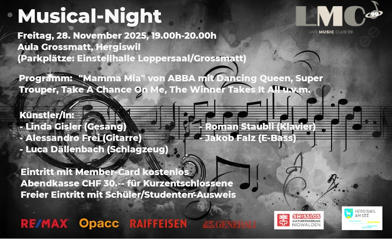 Konzertsaal Aula Grossmatt, Grossmatt 5, 6052 Hergiswil, Grossmatt 5, Hergiswil, CHCategory: Concert / Pop & Rock