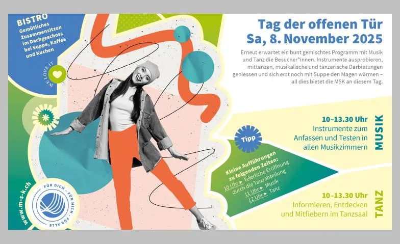 Interessierte an Musik und Tanz sind eingeladen die Musikschule Kreuzlingen zu besuchen und Einblicke hinter die Kulissen zu gewinnen. Die Welt der Musik und des Tanzes kann erkundet, ausprobiert und erlebt werden.