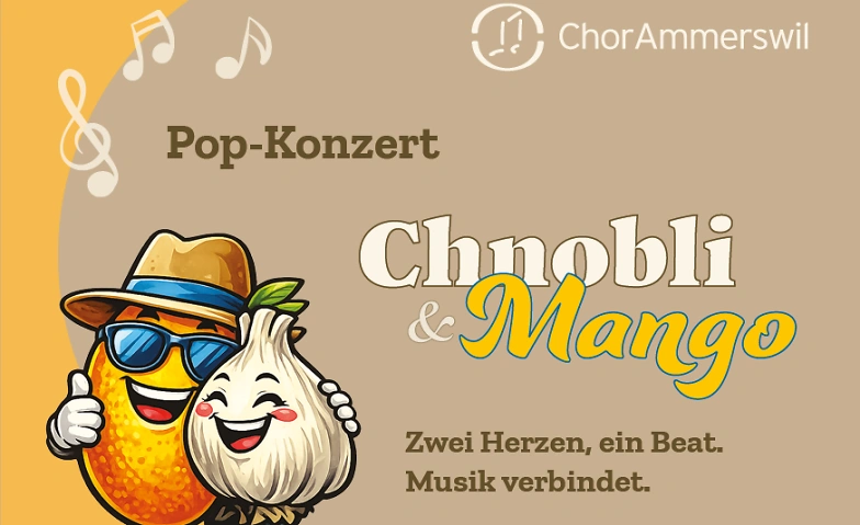 Unser neues Projekt "Chnobli & Mango" hat es in sich. Denn genauso unterschiedlich wie die beiden sind, präsentiert der Chor Ammerswil sein Konzert unter der Leitung von Tassos Tataroglou. Mit unseren Gästen, dem Akkordeon-Orchester fis-à-dis aus Villmergen und Roberto Vacca am Piano bringen wir Sound und Power ins Konzert.