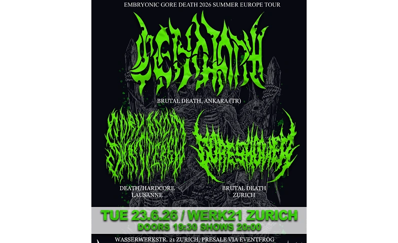Cenotaph (TUR) + DRY AND SHATTERED (CH) + GORESHOWER (CH) Werk21, Wasserwerkstrasse 21, 8006 Zürich Tickets