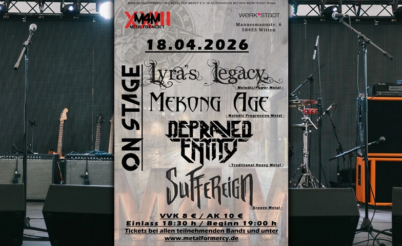 Das Metal For Mercy - On Stage - findet am 18. April 2026 bei uns in der WERK°STADT in Witten statt.