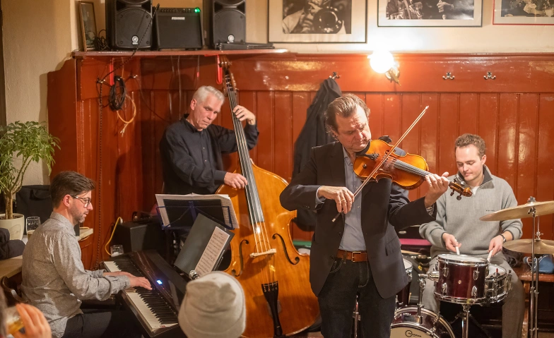 Im Jazzquartett „Like Standards“ musiziert der weltbekannte Jazzgeiger Joerg Widmoser mit seinem Sohn Leander Widmoser. Mit dabei sind der fantastische Pianist Andreas Gundlach aus Berlin und Bernhard Seidel am Bass.
