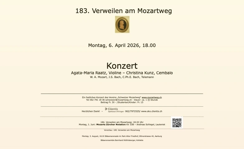Verweilen am Mozartweg - Konzert zum Ostermontag Museum Aarburg, Städtchen 35, 4663 Aarburg Tickets