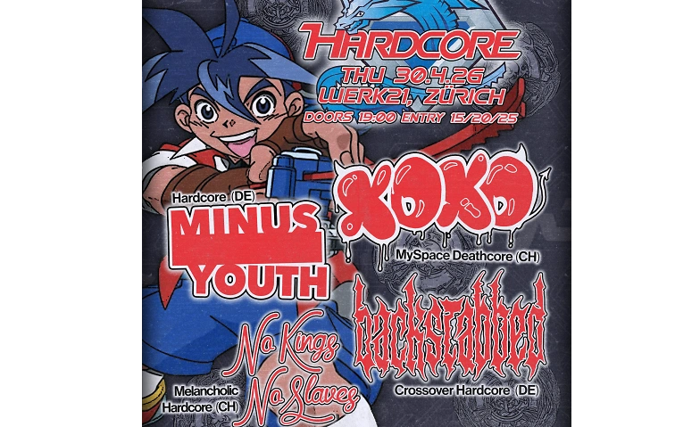 XOXO + MINUS YOUTH + BACKSTABBED + NO KINGS NO SLAVES Werk21, Wasserwerkstrasse 21, 8006 Zürich Tickets