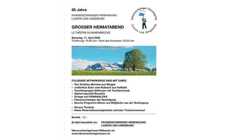 Heimatabend der Fahnenschwinger-Vereinigung Luzern Le Théâtre, Emmen, Rüeggisingerstrasse 20a, 6020 Emmenbrücke Tickets