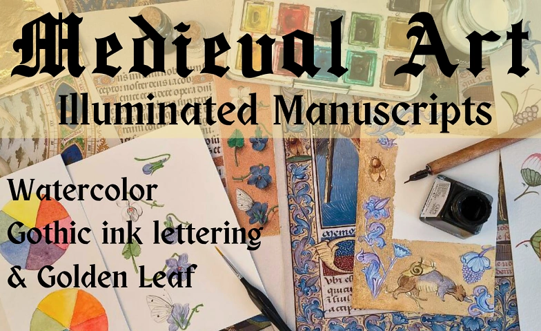 WATERCOLORS, GOTHIC CALLIGRAPHY and GOLDEN LEAF.