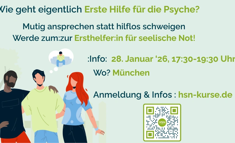 Das Schulungsprogramm des Projektes “Helfen in seelischer Not” vermittelt dem:der Ersthelfer:in, durch eine effektive und zielorientierte Handlungskette: „Hinschauen – Sprechen – Netzwerken“ (HSN), mehr Sicherheit und Selbstvertrauen im Umgang mit Menschen in psychischer Not. Ein praxisnaher Austausch sowie erfahrungsorientierte Übungselemente unterstützen zudem die Erarbeitung konkreter Hilfsangebote gegenüber der betroffenen Person.