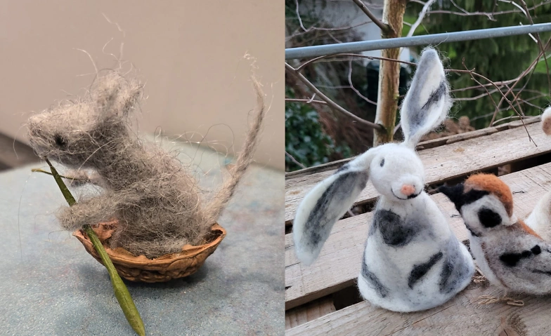 Mit naturfarbenem Wollvlies und Filznadeln gestalten wir kleine, ausdrucksstarke Frühlingswesen: Mäuse, Küken oder Häschen entstehen Schritt für Schritt in ruhiger Handarbeit. Ob dein Tierchen in einer Nussschale ruht, an einer Blüte schnuppert oder gerade etwas Schelmisches plant, liegt ganz bei dir – deiner Fantasie sind keine Grenzen gesetzt.
