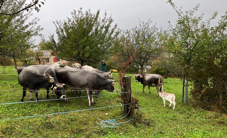 Beobachtungen direkt bei den Tieren auf dem Huebhof lernen wir die Mutterkuhherde mit räti-