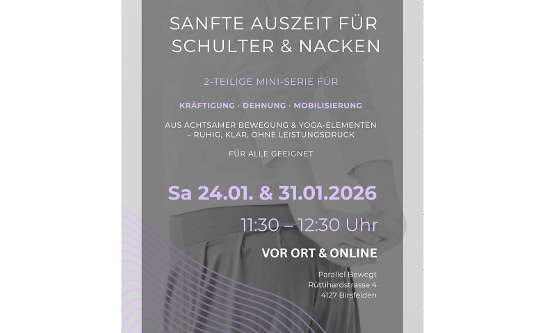 Sanfte auszeit für  Schulter & Nacken Parallel Bewegt, Rüttihardstrasse 4, 4127 Birsfelden Tickets