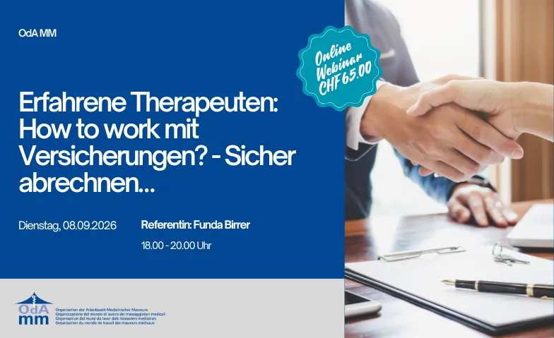 Im Kurzwebinar erhalten Sie praktische Tipps zur Abrechnung als Therapeut:in und erhalten Sie wertvolles Wissen zur Zusammenarbeit mit Versicherern.