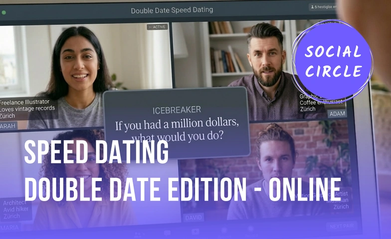 Level up your Monday night with Social Circle. This isn't your average, awkward 1-on-1 video call. Our Double Date format pairs you up with a wingman or wingwoman to meet other duos in a series of fast-paced, high-energy rounds. You can bring your friend too! It’s social, it’s supportive, and it’s the best way to meet quality singles in Zürich.