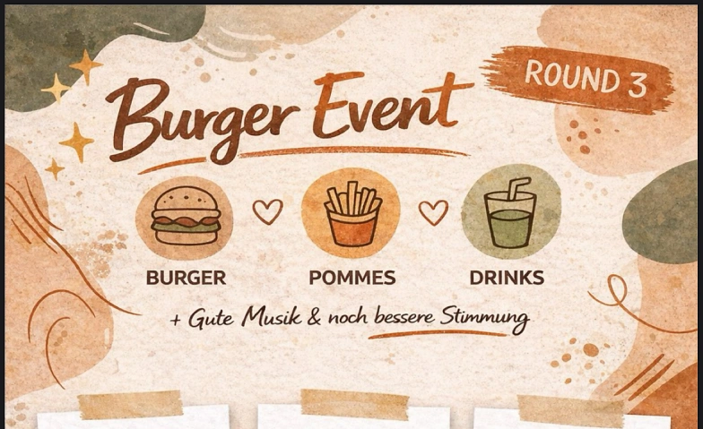 Wir organisieren ein Burger Charity Event mit rund 150 Teilnehmenden. Für einen Preis von 15 CHF gibt es Burger, Getränke und Snacks. Wer zusätzlich etwas beitragen möchte, kann freiwillig einen Aufpreis von 5 CHF bezahlen (insgesamt 20 CHF) und damit eine zusätzliche Spende leisten.