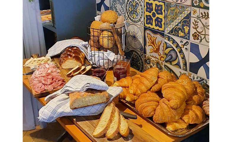 Im Preis inbegriffe: Cronetti, Brotauswahl, Gebäck, Brotaufstrich, herzhafte Cremas, Käseauswahl, Aufschnittauswahl, Brichemüesli, Rührei, Orangesaft, Früchte, 1 Kaffee und 1 Glas Prosecco Rosé
