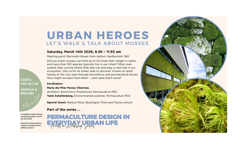 Join us for an urban walk to discover mosses as quiet heroes of the city, seen through biomimicry and permaculture lenses.