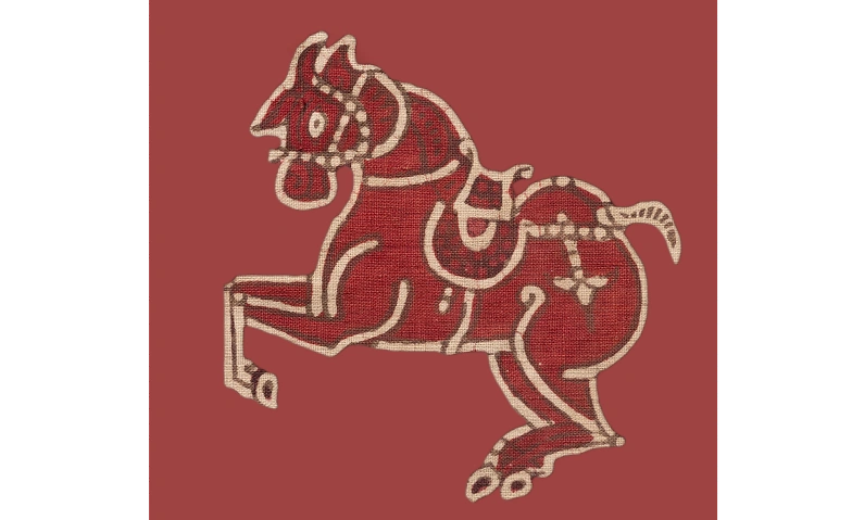 Credits: Zeichnung, Behang mit figürlichen Szenen (Detail), Baumwolle, Westindien (Gujarat), 14.–15. Jahrhundert. Abegg-Stiftung, Inv. Nr. 5862 © Abegg-Stiftung
