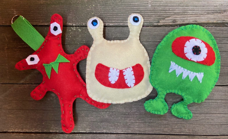 Freundlich, gefrässig, frech oder gruselig – du erfindest dein kleines Monster und nähst es aus Filz. Mit Zierstichen, Knöpfen, Bändern, Perlen und allerlei Krimskrams wird jedes Monster einzigartig.