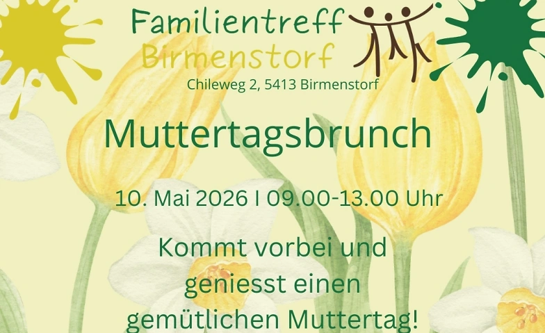 Der Familientreff Birmenstorf lädt herzlich zum gemütlichen Muttertagsbrunch ein. Geniesst gemeinsam mit Familie und Freunden feine Köstlichkeiten, liebevolle Begegnungen und einen entspannten Start in diesen besonderen Tag.