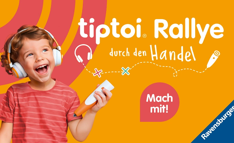 Seid mit dabei an den tiptoi® Rallyes in unseren Buchhandlungen! Die jungen Entdecker flitzen durch die Kinderbuchabteilung, lösen an den acht Stationen knifflige Aufgaben und können sich am Ende über eine Überraschung freuen!
