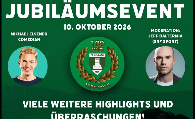 Am Samstag, 10. Oktober 2026 feiert der FC Selzach mit einem unterhaltsamen Rahmenprogramm, einem 3-Gang Menü und einer Tombola mit nicht alltäglichen Preisen sein 100-Jähriges Bestehen!