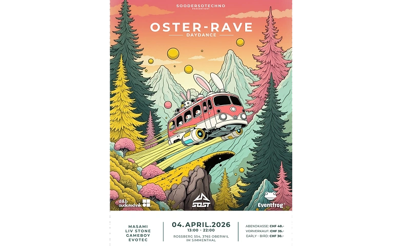 Nach dem erfolgreichen Oster-Rave-Daydance im letzten Jahr kehren wir zurück auf den Rossberg im wunderschönen Simmental – für eine weitere unvergessliche Ausgabe voller Beats, guter Vibes und einmaliger Bergkulisse.