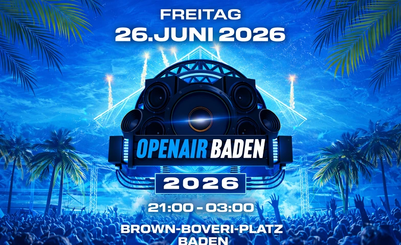 Freu dich auf das jährliche Highlight mitten in der Stadt Baden: das OpenAir Baden Am 26. Juni 2026 feiern wir gemeinsam von 21:00 bis 03:00 Uhr und tanzen zu den besten Hits der 90er bis 2010er.