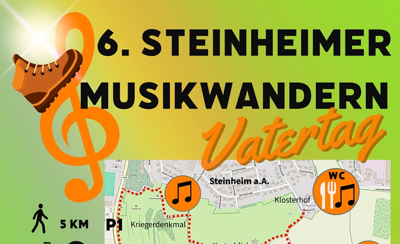 Am Vatertag, Donnerstag, 14. Mai 2026 (13-16 Uhr) wird Steinheim erneut zur Bühne für ein besonderes Erlebnis: Von 13 bis 16 Uhr lädt das mittlerweile 6. Steinheimer Musikwandern zu einer abwechslungsreichen Rundtour für Familien, Freundesgruppen, Paare oder in geselliger Runde.