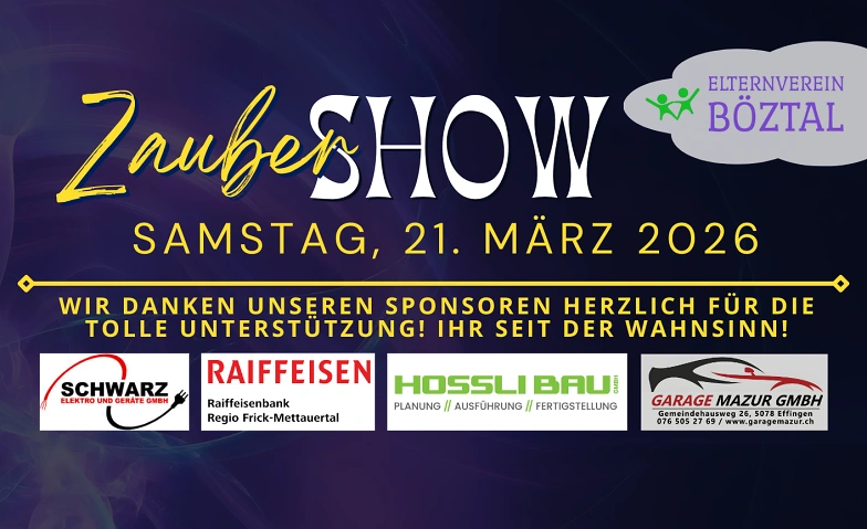 Arthur's unglaubliche KinderzauberSHOW in Hornussen; 16.00 Tickets Arthur's unglaubliche KinderzauberSHOW in Hornussen; 16.00 Saturday, 21.03.2026, 16:00 Turnhalle Hornussen, 5075 Hornussen, CH Tickets