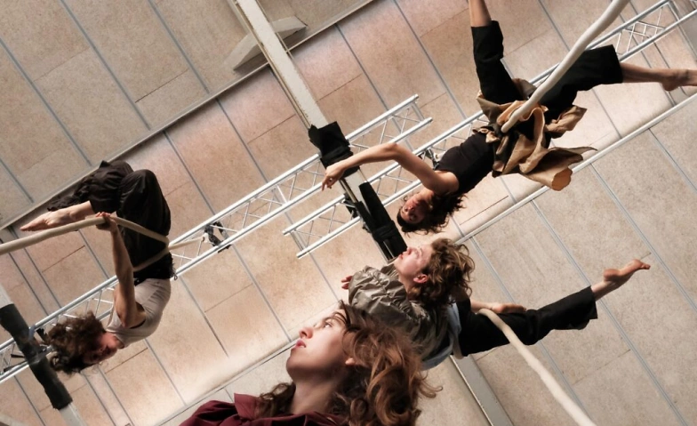 Mit drei Vertikalseilen und Live-Musik erforscht DRIFT, was Kollektivität bedeutet. Die Performance ist eine kollektive Erfahrung und die Erkundung der Bühne als ein gemeinsamer und intimer Raum zwischen Publikum und Performenden. Der Bühnenraum wird dynamisch und fließend, während das Publikum den Raum betreten, verlassen und an den sich entfaltenden Geschehnissen teilhaben kann. Die Performance hinterfragt den Raum, den wir einnehmen: Wann nehmen und geben wir Raum? Wo positionieren wir uns innerhalb einer Gruppe? Was ermöglicht es uns, gemeinsam zu handeln?