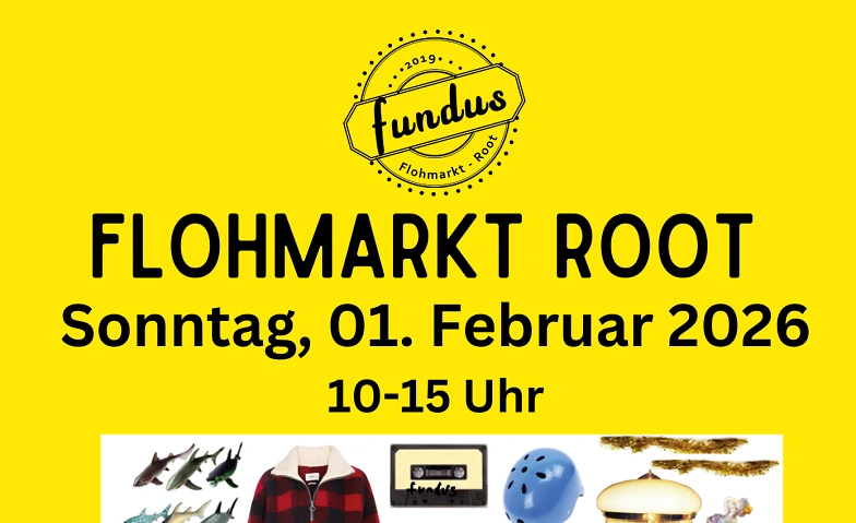 Indoor Flohmarkt Root, "fundus" | Sunday, 01.02.2026, 10:00 | ARENA Root, 6037 Root, CH | Tickets | |