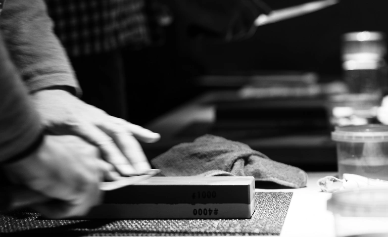 Im Workshop „Japanisches Messerschleifen“ erhälstt du eine theoretische Einführung und kannst danach deine eigenen Messer unter Anleitung mit Wasserschleifsteinen bei uns schärfen.