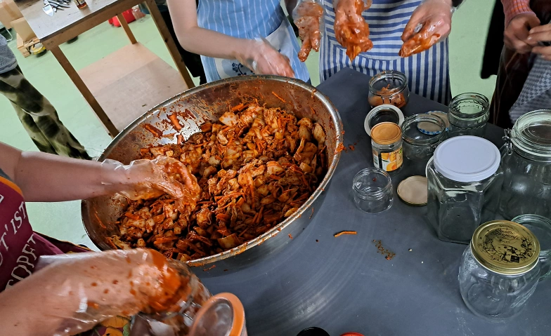 Kimchi-Workshop: Mit saisonalen Bio-Zutaten aus der Region Bern bereiten wir gemeinsam eine große Portion Kimchi zu. Wir verbinden koreanische Tradition mit lokaler Erde. Im Garten von Gepard14 vergraben wir einen Teil der Erzeugnisse zur langsamen Reifung.