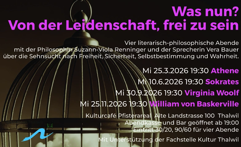 Athene hat genug – wir sind frei | Wednesday, 25.03.2026, 19:30 | Kulturcafé Pfisterareal, 8800 Thalwil, CH | Tickets | |