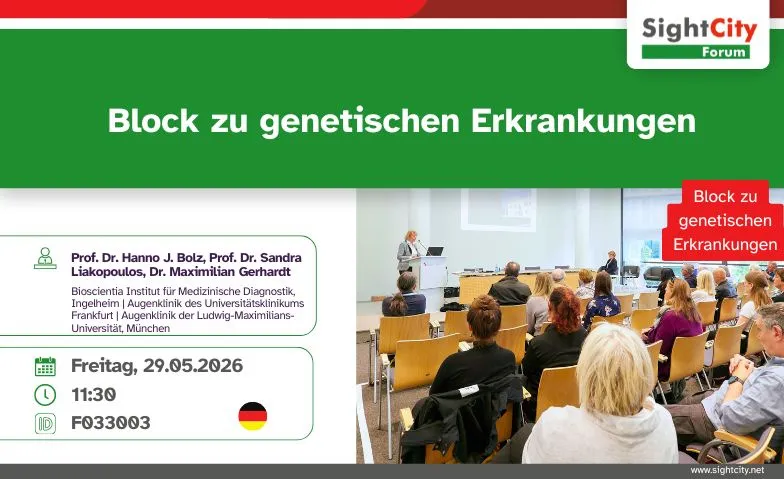 Block zu genetischen Erkrankungen mit Prof. Dr. Hanno J. Bolz, Prof.Dr.med Sandra Liakopoulos & Dr.Med. Max Gerhardt von Bioscientia Institut für Medizinische Diagnostik, Ingelheim als Referenten.
