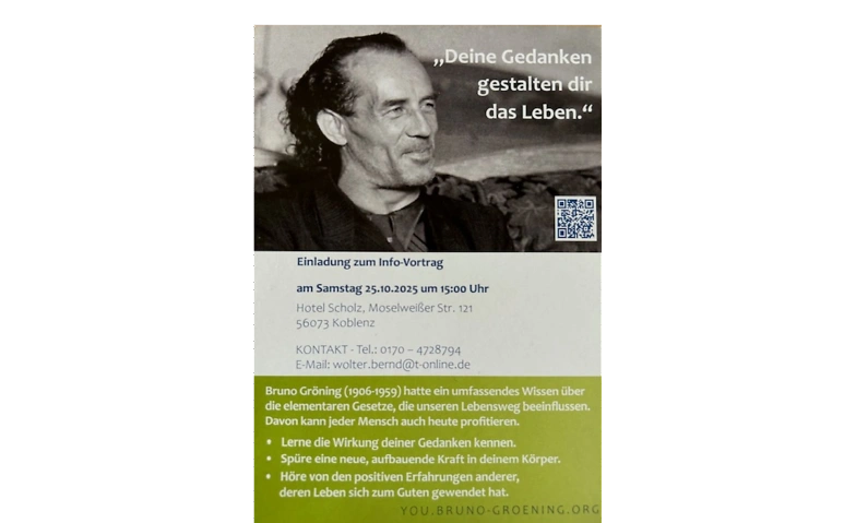 Informationsvortrag über Hilfe und Heilung auf geistigem Weg am 25.10.2025 um 15:00 Uhr, im Hotel Scholz, Moselweißer Str. 121, 56073 Koblenz.