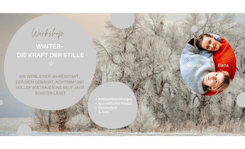 In diesem Workshop erforschen wir den Winter als Quelle von Klarheit, Ruhe und innerer Stärke. Du wünschst dir Impulse, die dich durch den Winter begleiten, um zur richtigen Zeit, im eigenen Tempo und mit voller Kraft loslegen zu können?