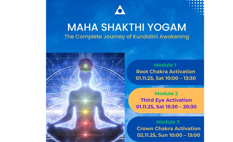 Maha Shakthi Yogam is a powerful spiritual practice designed to awaken and harmonize the inner energy centers (chakras) of the body. Through a guided and traditional process, participants will experience deep states of meditation, profound healing, and higher levels of self-awareness.