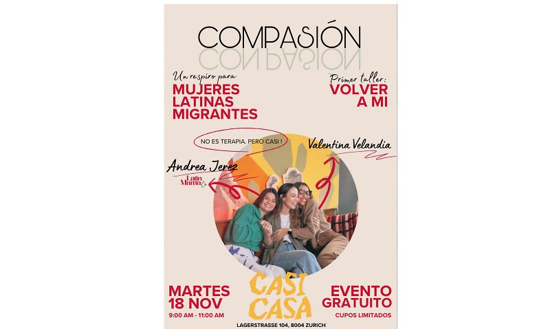 Compasión con Pasión, es un espacio creado para mujeres migrantes que desean tomarse un respiro, sentirse acompañadas y mirar con compasión su propio proceso de adaptación en Suiza.
