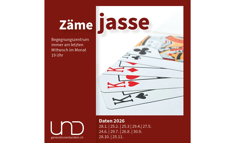 Am letzten Mittwoch im Monat, von 19.00 bis 22.00 Uhr, treffen wir uns im Begegnungszentrum Höchhus zum gemeinsamen Jassen – offen, unkompliziert und für alle geeignet. Vorwissen ist nicht nötig: Du kannst das Jassen neu lernen, alte Kenntnisse auffrischen oder einfach einen gemütlichen Spielabend geniessen.
