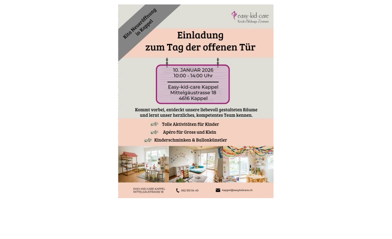 Easy-kid-care Kappel, Mittelgäustrasse 18, Kappel, CHCategory: Leisure & Excursions / Open Day
