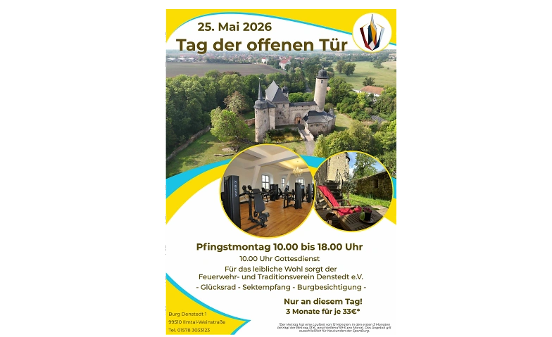 Am Pfingstmontag öffnet unsere faszinierende Sportburg wieder ihre Türen – ein Event, das Sie nicht verpassen dürfen! Tauchen Sie ein in eine einzigartige Mischung aus moderner Fitness, historischem Flair und herzlicher Gemeinschaft.
