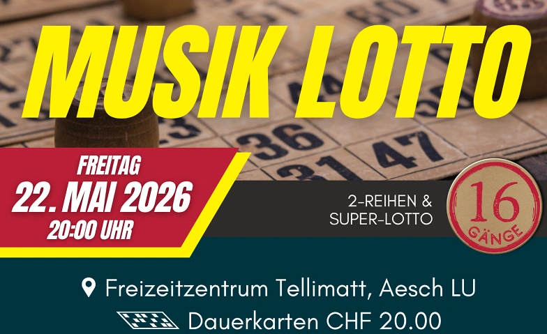 Musik Lotto in Aesch LU Sport- Freizeitzentrum Tellimatt, Tellimattstrasse 10, 6287 Aesch Tickets