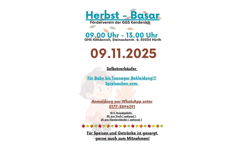 Herbst Basar rund ums Baby,Kind und Teenager Hauptschule Kendenich, Steinackerstraße 6, 50354 Hürth Tickets